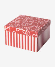 Velika kutija na pruge za Dan zaljubljenih elegantno je rješenje za pakovanje većih poklona. Moderan prugasti uzorak i praktični poklopac čine je idealnom za posebne poklone, poput odjeće ili ukrasa. Napravljena je od čvrstog kartona i pogodna je i za odlaganje. U ponudi su dostupni različiti uzorci i veličine.