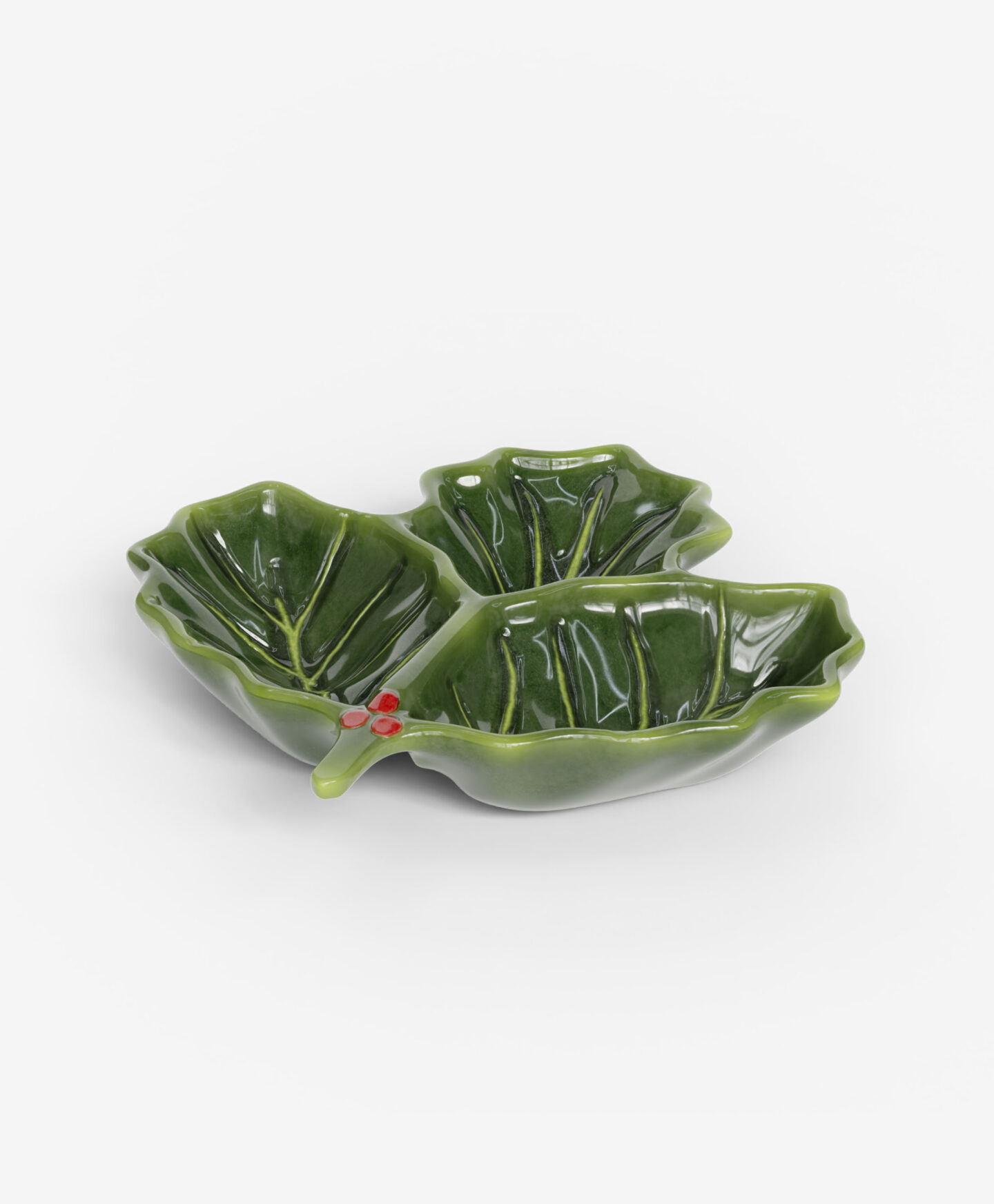 Zdjela u obliku lista božikovine izgleda kao ukras sama po sebi. Idealna je za orašaste plodove, masline ili sitne slatkiše, savršena za praznične trenutke. Zahvaljujući neobičnom obliku, postaje praktičan i ujedno vrlo efektan dodatak.