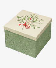 Zelena kartonska kutija ukrašena je prazničnim uzorkom koji joj daje poseban šarm. Praktična je i estetski privlačna, što je čini odličnom za pakovanje iznenađenja za voljene osobe. Pokloni u ovakvom pakovanju izgledaju prelijepo i donose radost na prvi pogled.