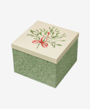 Zelena kartonska kutija ukrašena je prazničnim uzorkom koji joj daje poseban šarm. Praktična je i estetski privlačna, što je čini odličnom za pakovanje iznenađenja za voljene osobe. Pokloni u ovakvom pakovanju izgledaju prelijepo i donose radost na prvi pogled.