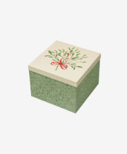Zelena kartonska kutija ukrašena je prazničnim uzorkom koji joj daje poseban šarm. Praktična je i estetski privlačna, što je čini odličnom za pakovanje iznenađenja za voljene osobe. Pokloni u ovakvom pakovanju izgledaju prelijepo i donose radost na prvi pogled.