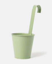 Zelena viseća navlaka za saksiju s rebrastim zidovima privlači pažnju svojim proljetnim dizajnom. Praktična kuka omogućava postavljanje na balkonsku ogradu, ispod stropa ili na drvenu površinu, maksimalno iskorištavajući prostor. Metalna konstrukcija je izdržljiva i otporna na koroziju, sunce i vremenske uslove, što garantuje dugotrajnu upotrebu. U ponudi su dostupni različiti uzorci.