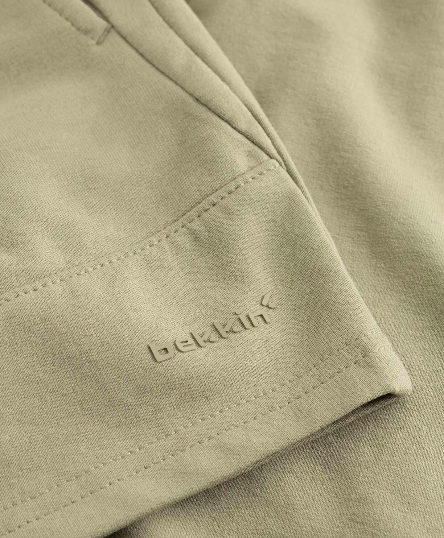 Zeleni Bekkin šorc za dječake savršen je za aktivan dan. Napravljen od materijala s visokim udjelom pamuka, prozračan je i lagan. Elastični pojas s vezicama osigurava savršeno pristajanje. Funkcionalni džepovi savršeni su za odlaganje sitnica. Univerzalan, ravan kroj osigurava potpunu slobodu kretanja. U ponudi je dostupna i odgovarajuća majica.