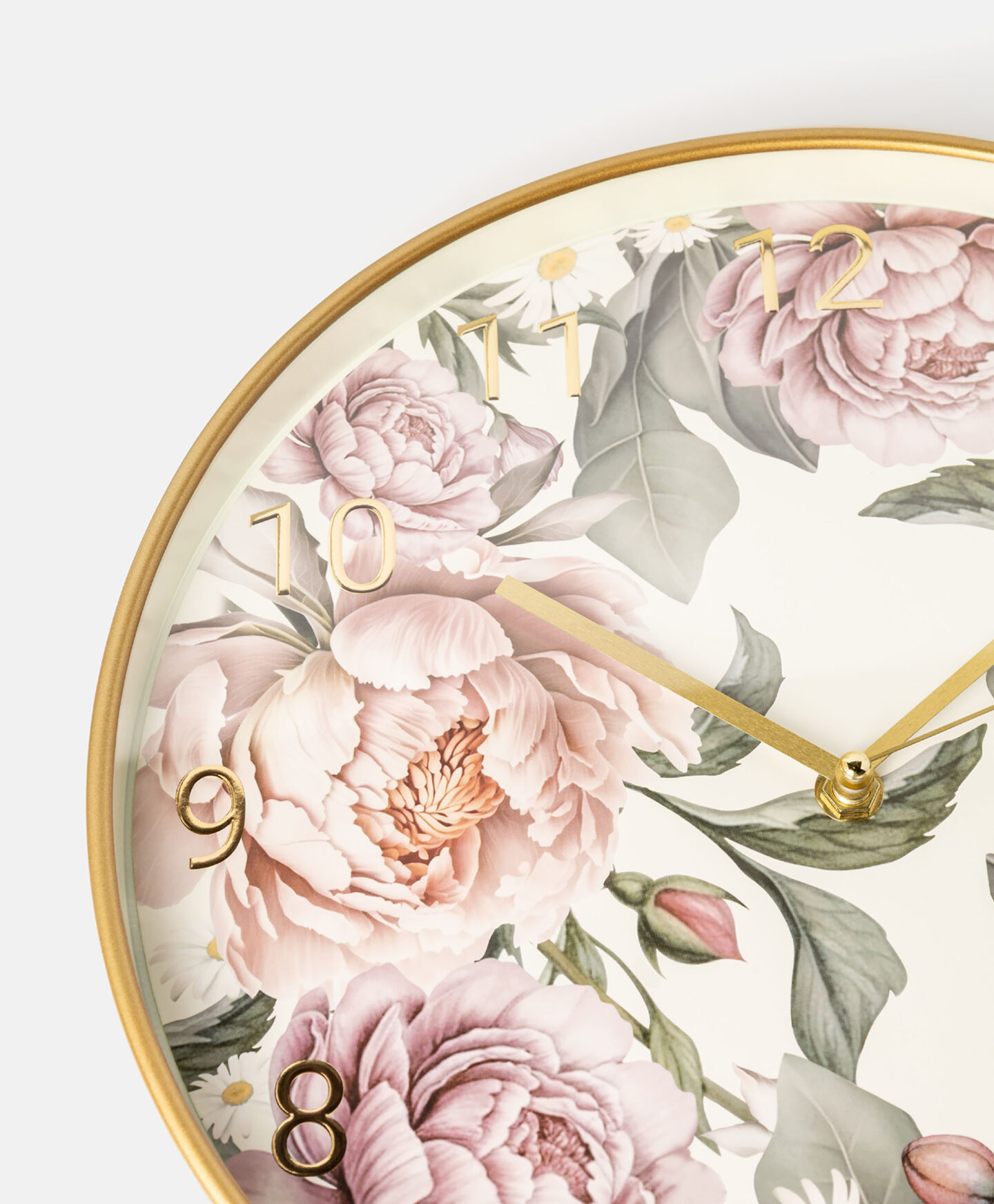 Zidni sat s cvjetnim uzorkom pokazuje vrijeme i istovremeno uljepšava vaš prostor. Motiv rascvjetanih božura najavljuje proljeće i unosi boju u svaki ambijent. Zlatni okvir i kazaljke djeluju izuzetno elegantno. Sat je odlična ideja za poklon ljubiteljima posebnih dodataka.