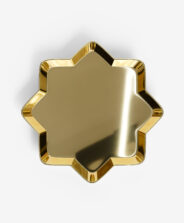 Zlatna ukrasna tacna u obliku zvijezde unosi sjaj i eleganciju u svaki prostor. Može poslužiti kao podloga za svijeće, male ukrase ili praznične poslastice. Njen oblik daje svečan ton i najjednostavnijim aranžmanima.
