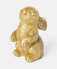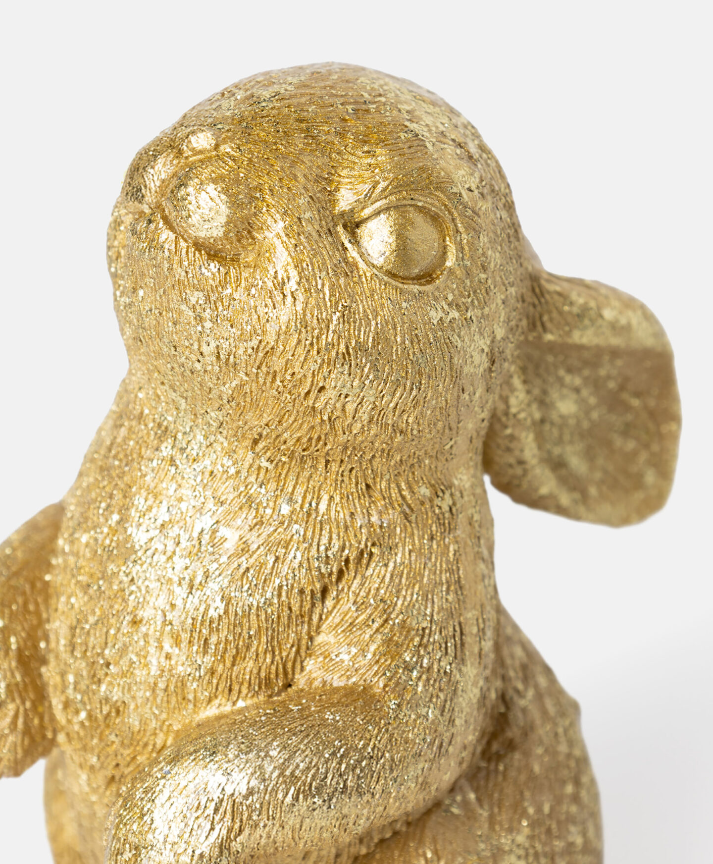 Zlatni zec od polirezina privlači pažnju svojom suptilnom elegancijom. Polirezin je lagan i izdržljiv materijal koji odolijeva protoku vremena i vremenskim uslovima, osiguravajući dugotrajan kvalitet figurice. Zec je savršen za one koji traže nježne i ukusne ukrasne dodatke. U ponudi su dostupni različiti dizajni.