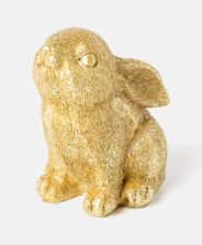Zlatni zec od polirezina privlači pažnju svojom suptilnom elegancijom. Polirezin je lagan i izdržljiv materijal koji odolijeva protoku vremena i vremenskim uslovima, osiguravajući dugotrajan kvalitet figurice. Zec je savršen za one koji traže nježne i ukusne ukrasne dodatke. U ponudi su dostupni različiti dizajni.