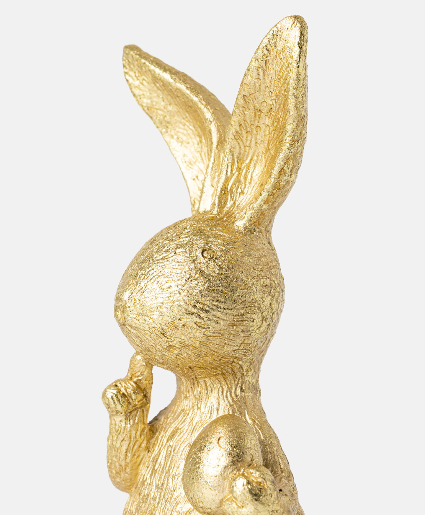 Zlatni zec od polirezina s uskršnjim jajetom privlači pažnju svojom suptilnom elegancijom. Polirezin je lagan i izdržljiv materijal koji odolijeva protoku vremena i vremenskim uslovima, osiguravajući dugotrajan kvalitet figurice. Zec je savršen za one koji traže nježne i ukusne ukrasne dodatke. U ponudi su dostupni različiti dizajni.