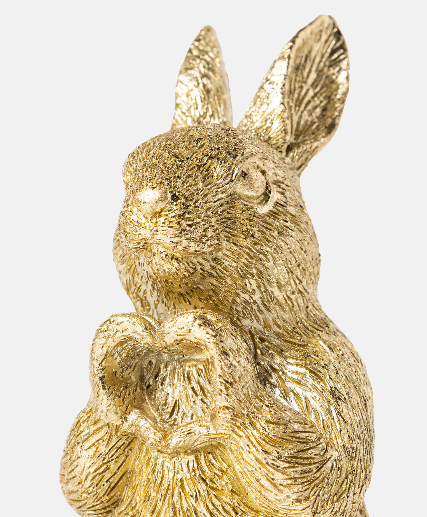 Zlatni zec sa srcem je jedinstven ukras koji će uljepšati i unutrašnje i vanjske prostore. Možete ga postaviti na terasu, balkon ili među cvjetne gredice. Šarmantni motiv srca čini ovog zeku posebnim u odnosu na druge figurice.