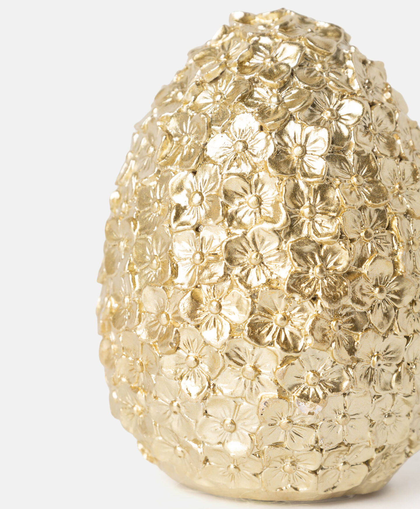 Ukrasno zlatno jaje napravljeno od polirezina predstavlja elegantan dodatak koji privlači pažnju svojim sjajnim završetkom. Polirezin je izdržljiv, lagan i dugotrajan materijal, otporan na oštećenja, ogrebotine i promjene boje, što osigurava da ukras dugo zadrži svoj izgled.
