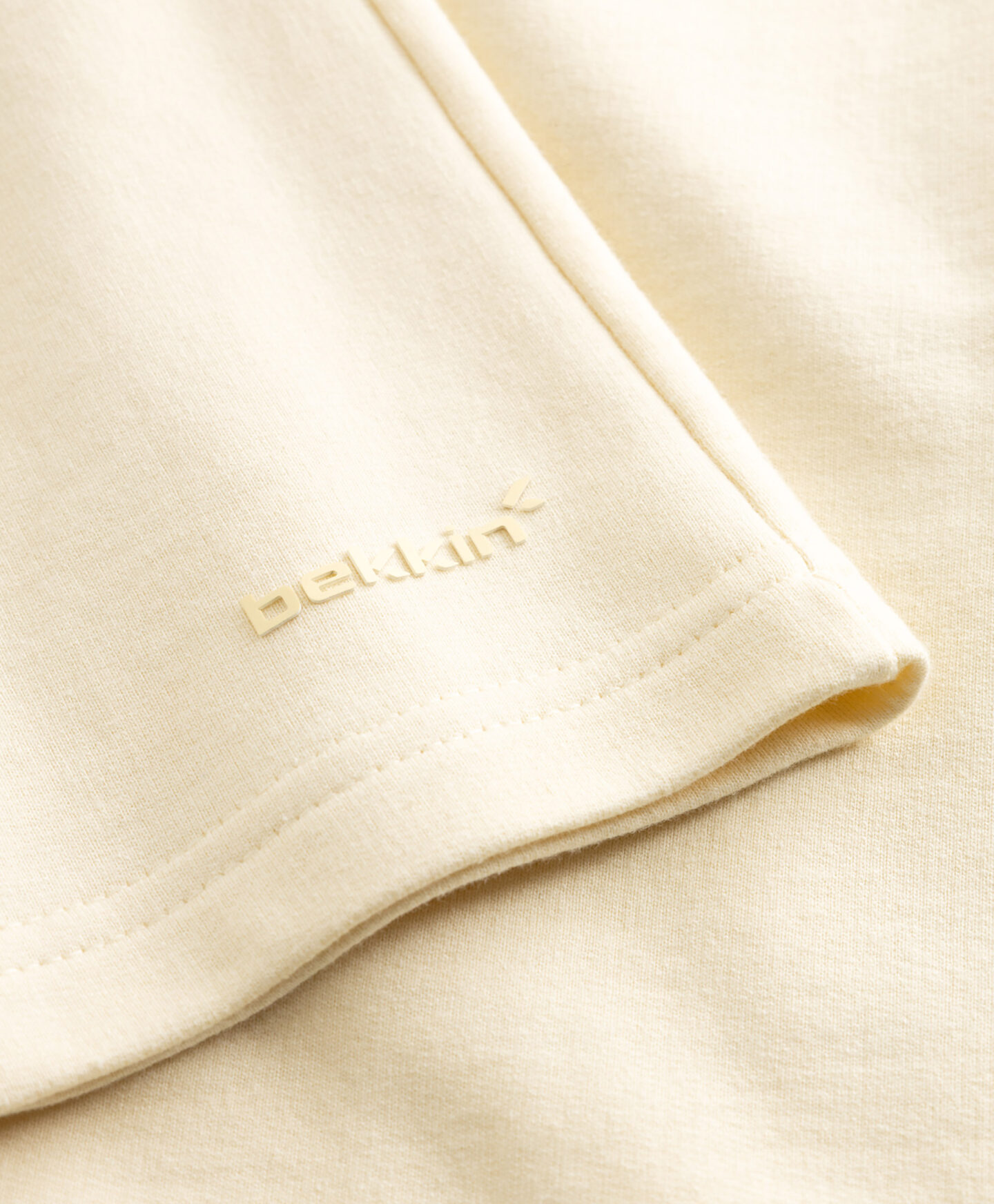 Žuti Bekkin šorc za žene, napravljen od 100% pamuka, nezaobilazan je za vruće dane. Sastav od 100% pamuka garantuje visok nivo udobnosti i odličnu prozračnost. Šorc je mekan na dodir, nježan prema koži i ne privlači statički elektricitet. Savršen je uz sportsku majicu ili polo majicu. U ponudi je dostupna i odgovarajuća majica.
